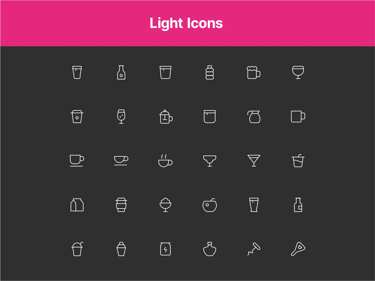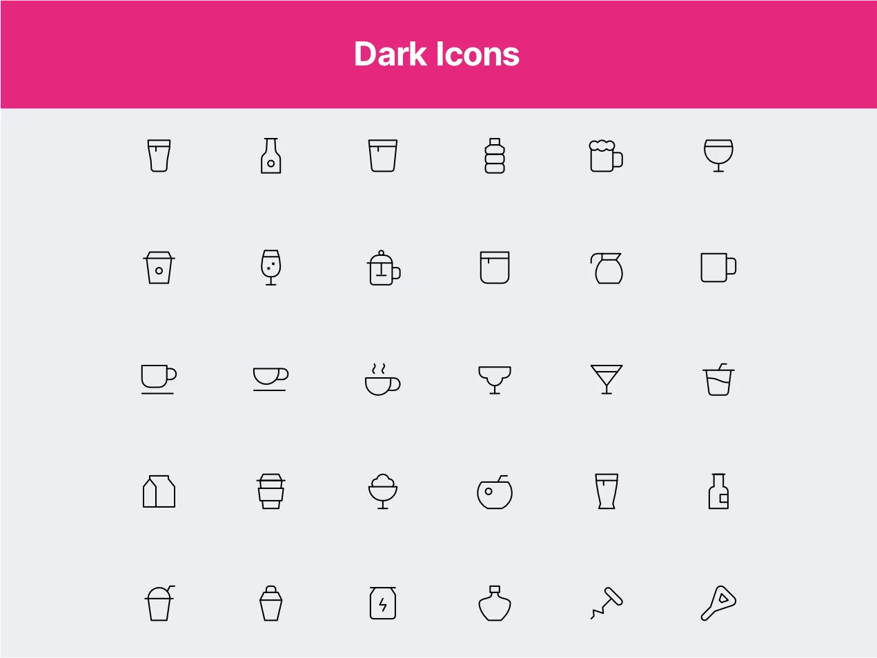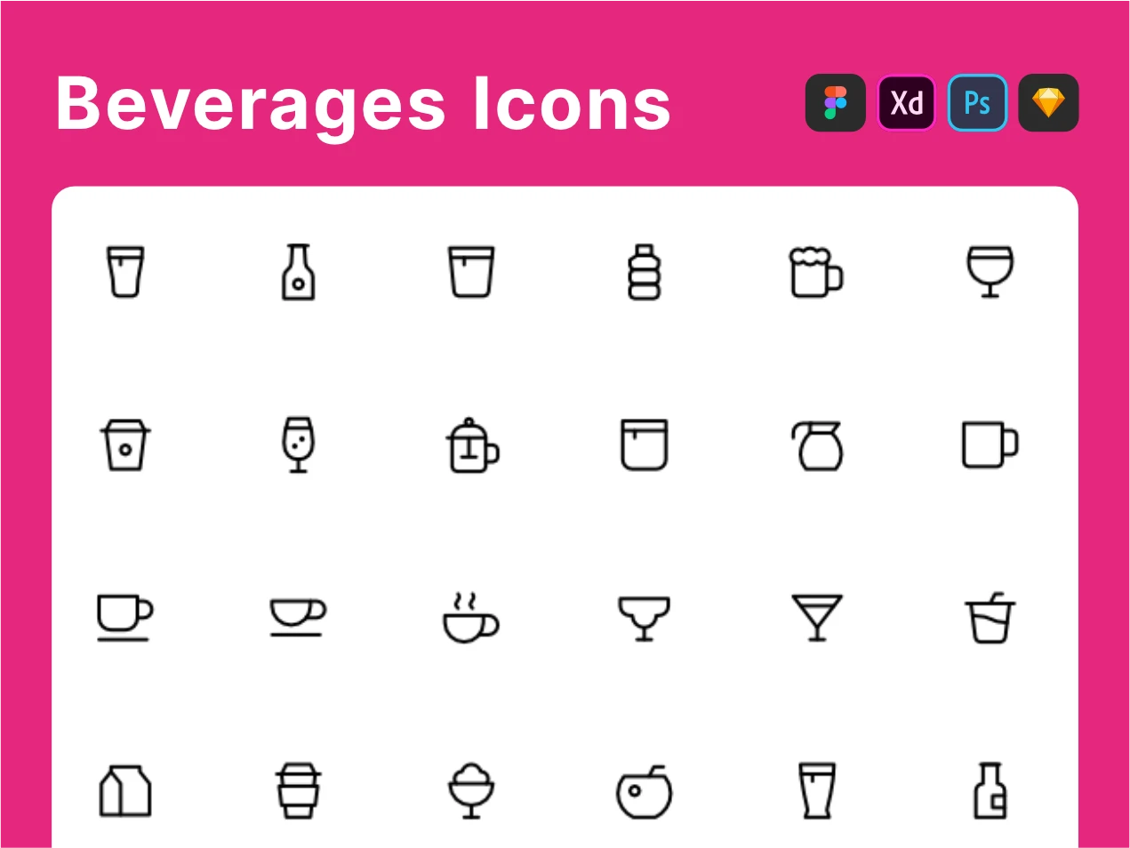 Beverages Line Icons adalah sebuah produk desain vektor yang dirancang khusus untuk aplikasi Sketch, XD, Adobe Photoshop, Adobe Illustrator, dan Figma. Produk ini memudahkan Anda untuk membuat desain yang berkaitan dengan bisnis atau startup dengan mudah dan cepat.